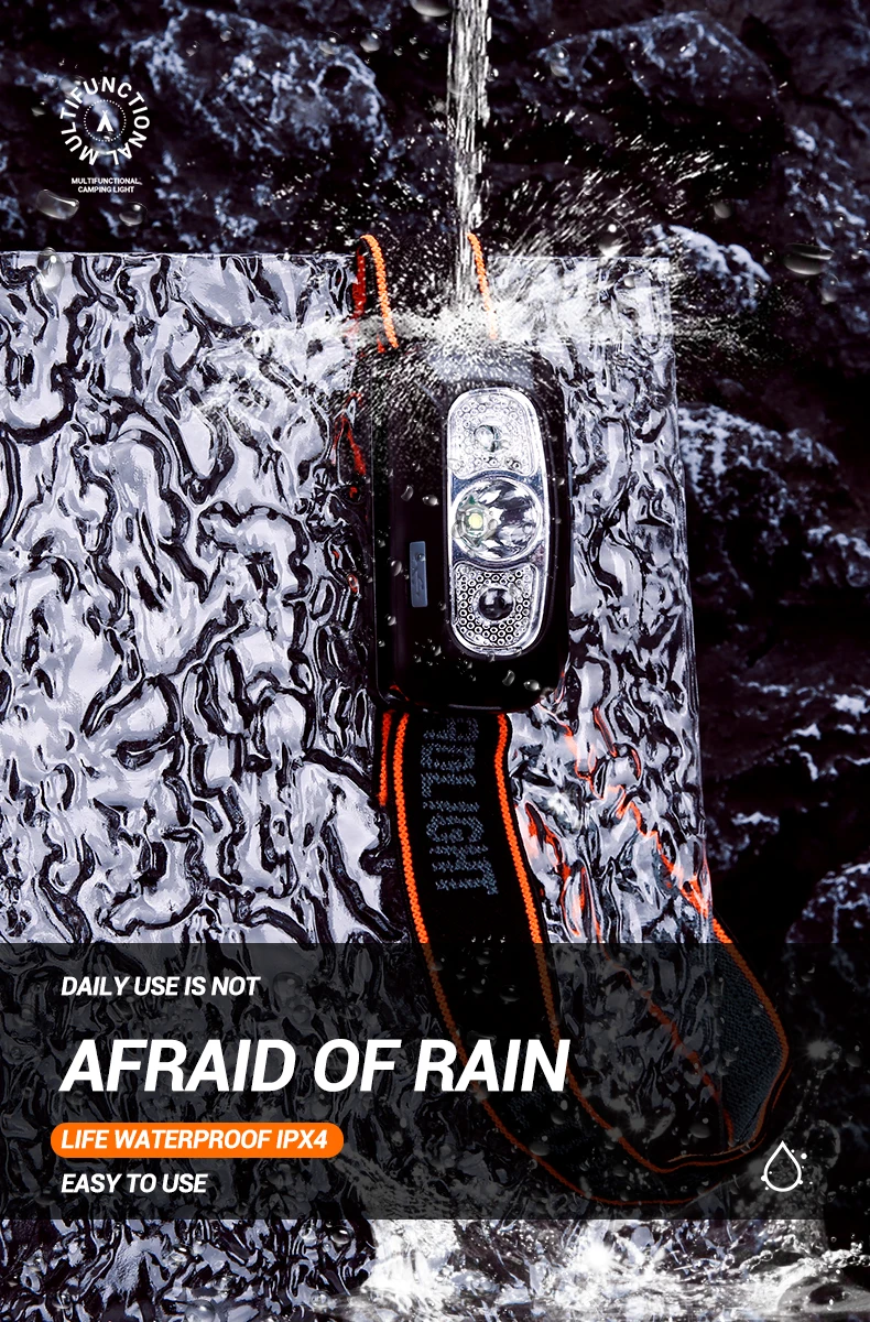 The portable outdoor indnctive light is all-perspectively designed, the USB port charging adds a stronger power on it. Special double-switch design to ensure you a convert modes convert. Hight-capacity rechargeable battery offers a long lasting powering for safer outdoor sports. The headlamp is mainly used for fishing, hunting, night running, hiking and camping.